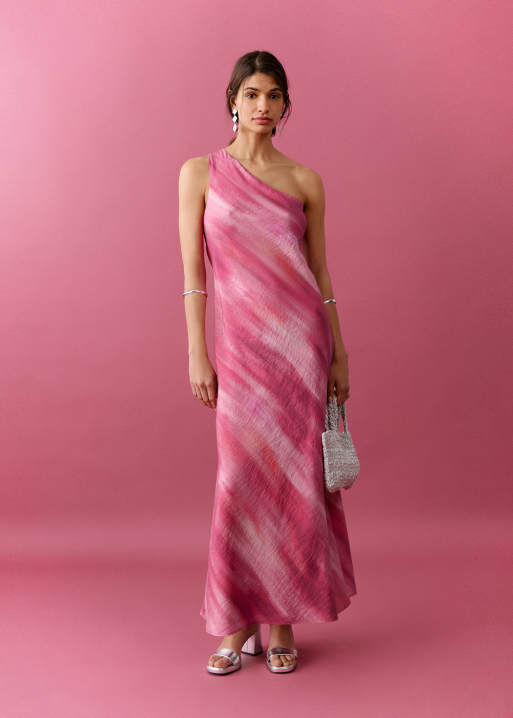 Mango Teen one shoulder asymmetric hem maxi dress in pink print