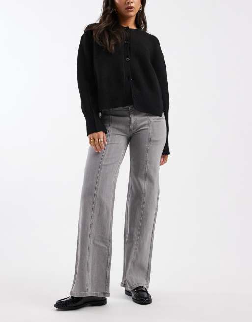 Mango Teen wide leg jean with seam detail in washed grey