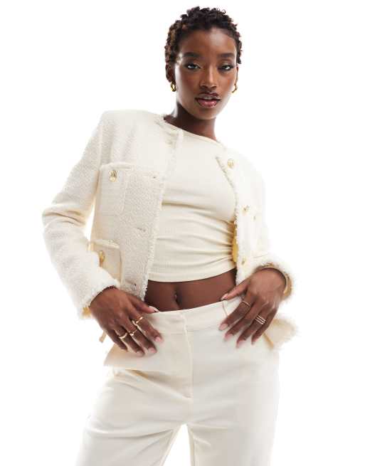 Mango tweed tailored button jacket in ecru