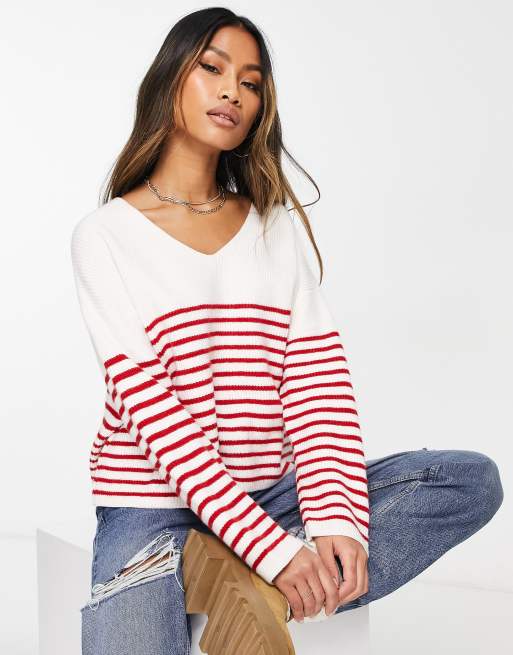 Mango v neck striped jumper in red