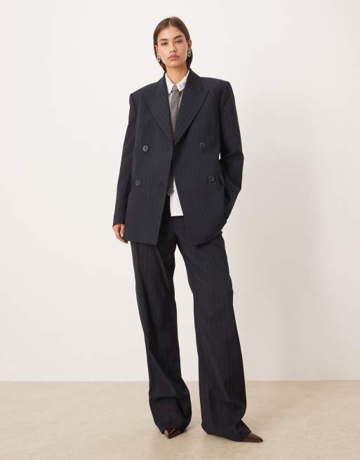 Mango Varsovia tailored flared trouser co-ord in navy pinstripe