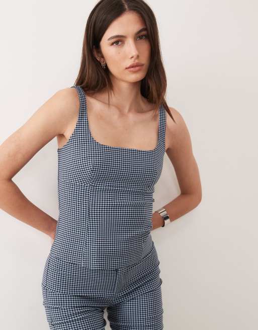 Mango Victoria square neck sleeveless top co-ord in blue check