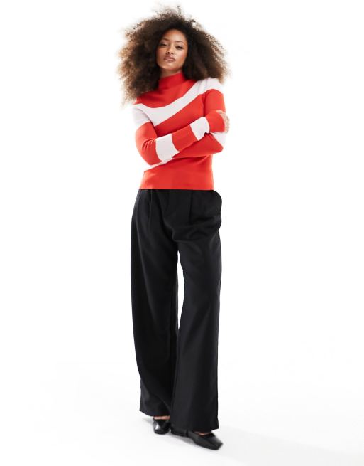 Mango wave stripe jumper in red and white