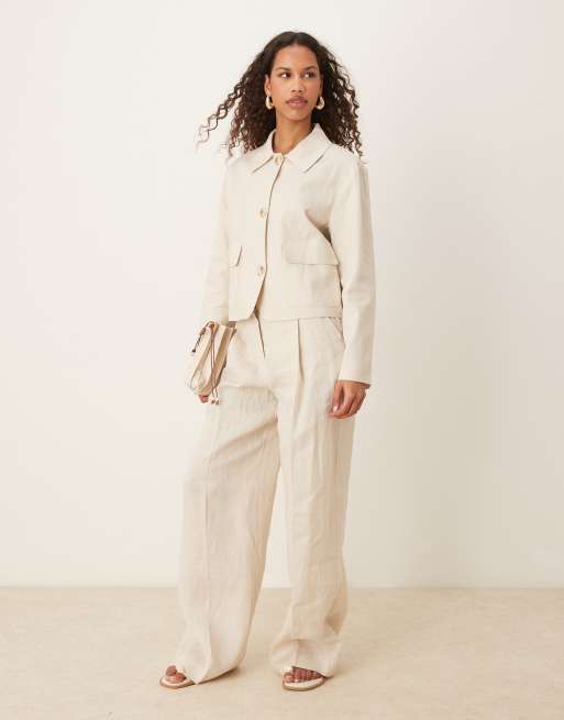 Mango wide leg tailored linen trouser with front pleat co-ord in stone