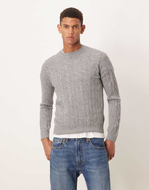 Mango wool cable knit jumper in grey