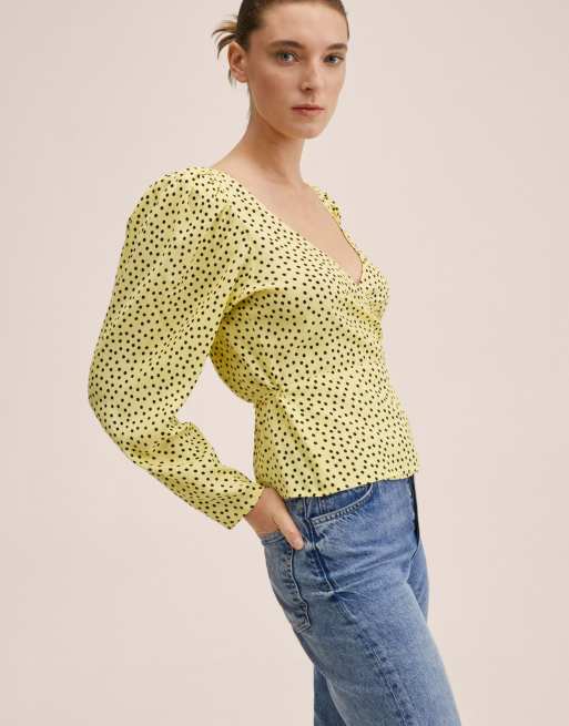 Mango wrap detail blouse in yellow polka dot