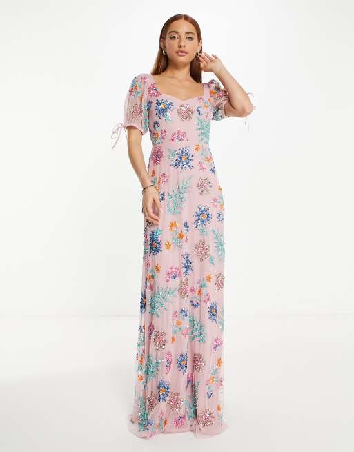 Maya all over embellished maxi dress in blush