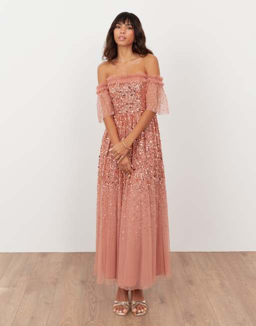 Maya Embellished bardot midaxi dress in terracotta pink