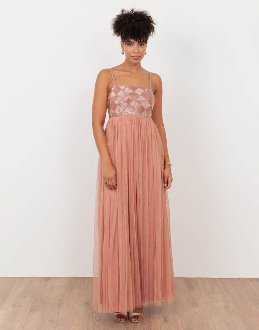 Maya Embellished cami maxi dress in terracotta pink