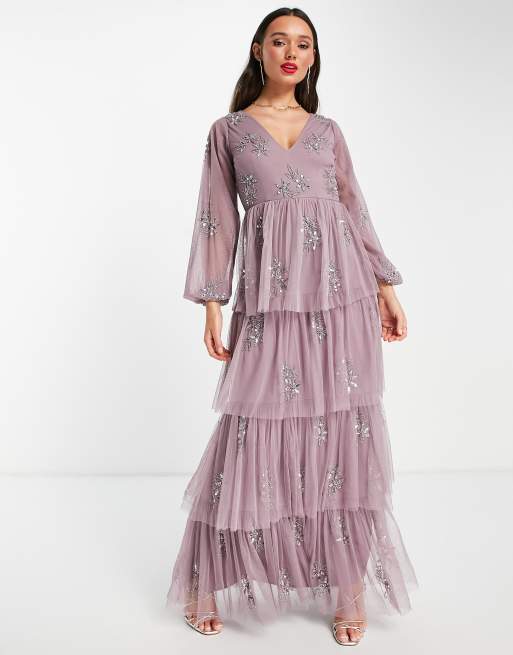 Maya embellished maxi dress with ruffle skirt in lilac