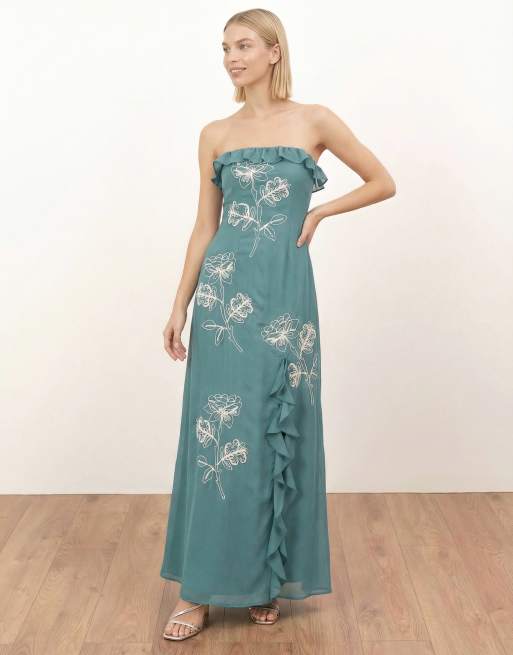Maya Floral embroidery bandeau maxi dress in turquoise