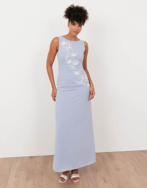 Maya Floral embroidery cowl back maxi dress in pastel blue