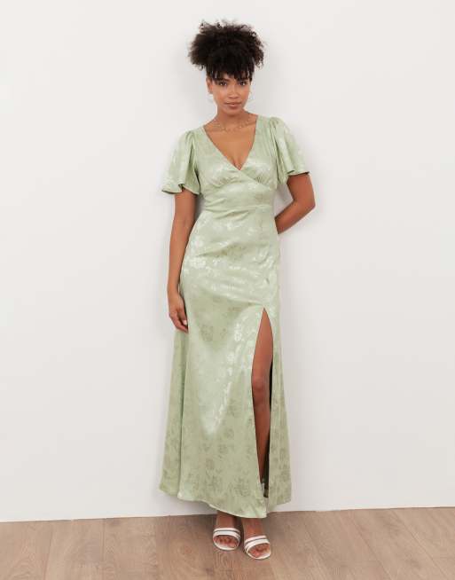 Maya Floral jacquard satin maxi dress in meadow green