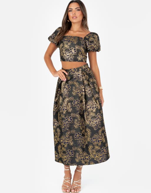 Maya floral jacquard skirt co-ord in navy