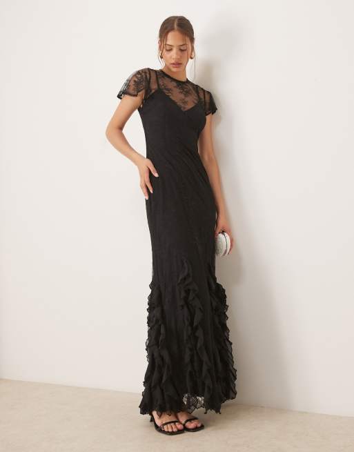 Maya Flutter sleeve lace maxi dress in black