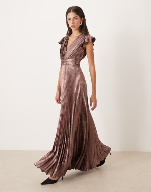 Maya Flutter sleeve v neck pleated maxi dress in rose gold