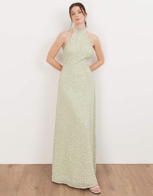 Maya Linear embellishment halter neck maxi dress in meadow green
