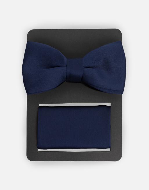 Maya Satin bow tie pocket square set in navy