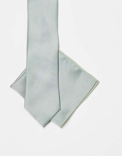 Maya Satin tie pocket square set in sage green
