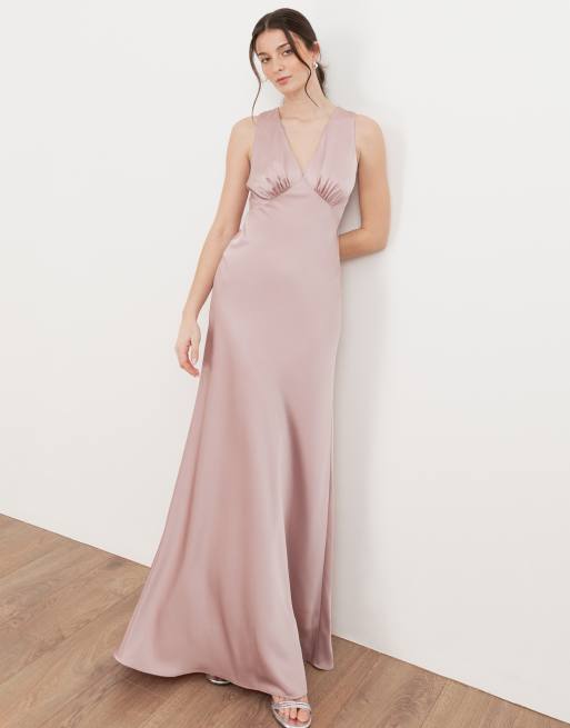Maya Sleeveless v neck satin maxi dress in blush