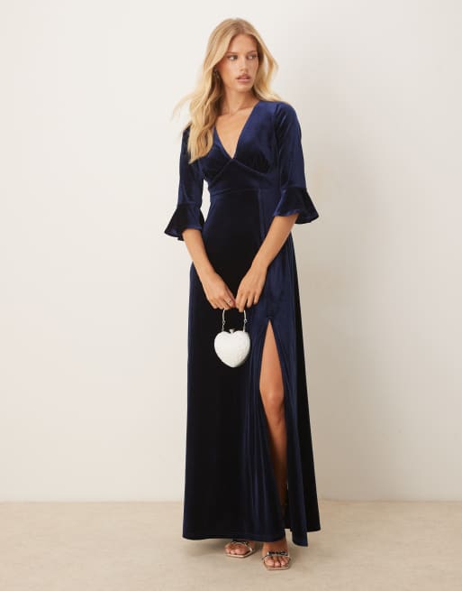 Maya Velvet v neck flute sleeve maxi dress in navy