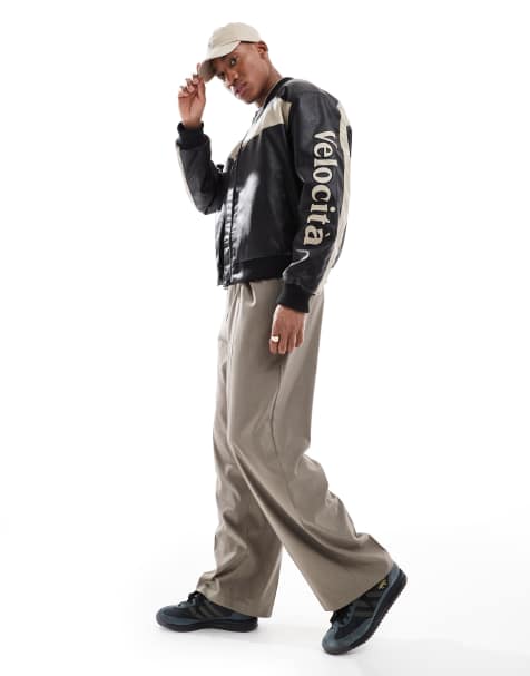 ASOS DESIGN faux leather funnel neck bomber in blue