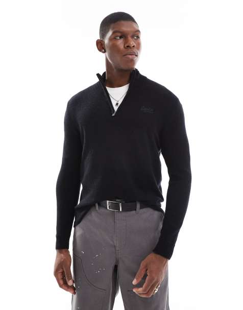 MORE COLOURSASOS DESIGN oversized boxy fit heavyweight knitted wool blend quarter zip jumper in navy