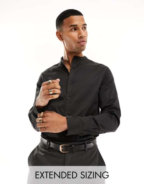 ASOS DESIGN grandad collar formal regular shirt in dark stone