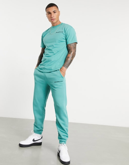 Mennace essentials logo co-ord set in green