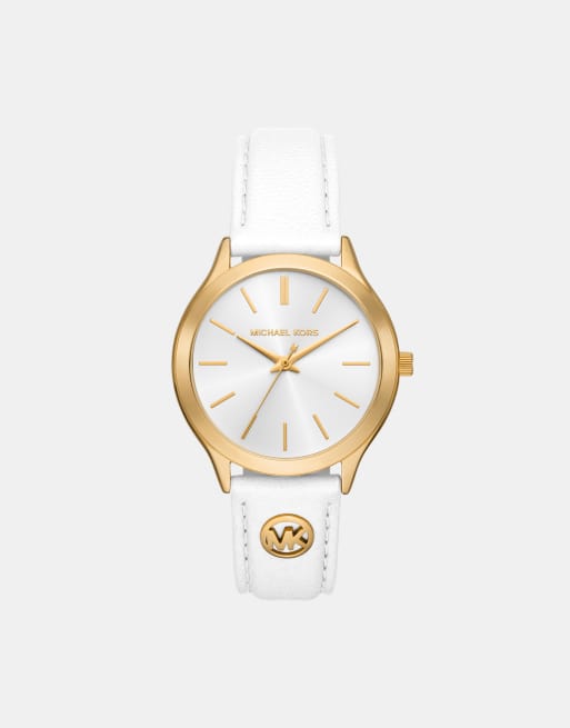 Michael Kors Women's Slim runway three-hand white leather watch - WHITE