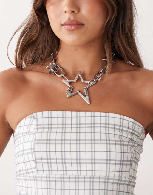 Minga London oversized mix chains star pendant necklace in silver
