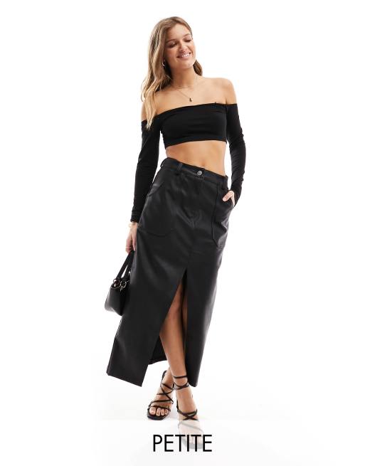 Miss Selfridge Petite faux leather maxi skirt in black