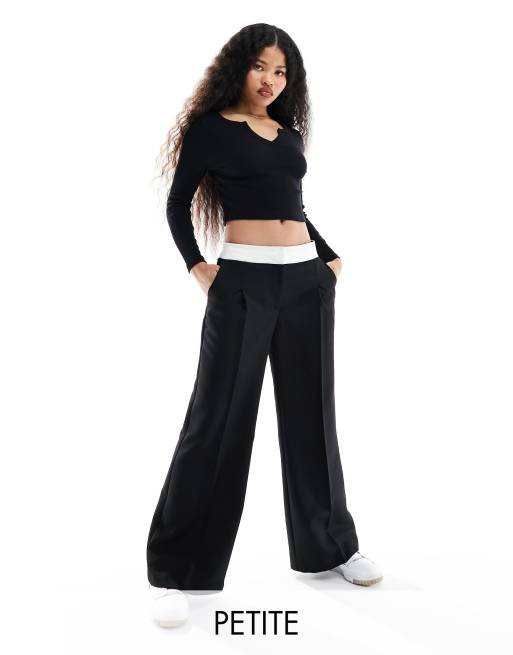 Miss Selfridge Petite fold over waistband trouser in black