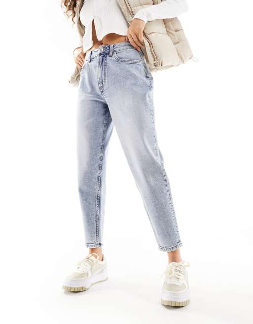 Miss Selfridge Petite mom high waist jean in light acid wash blue