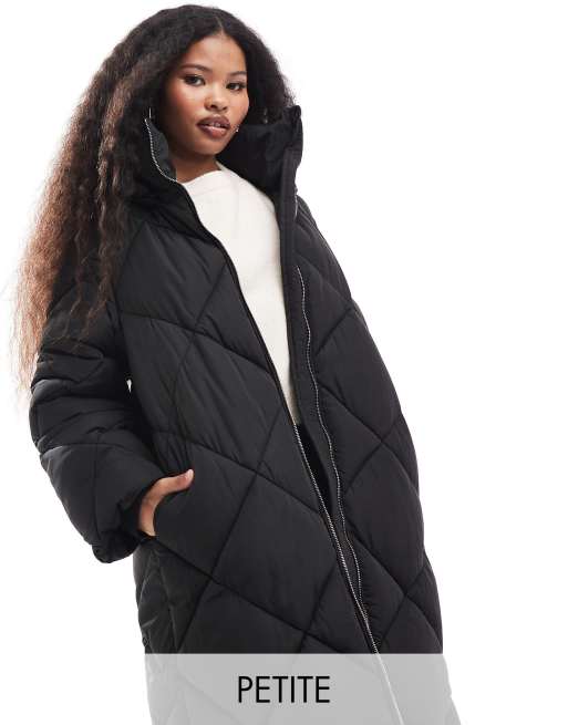 Miss Selfridge Petite quilted hooded maxi puffer coat in black