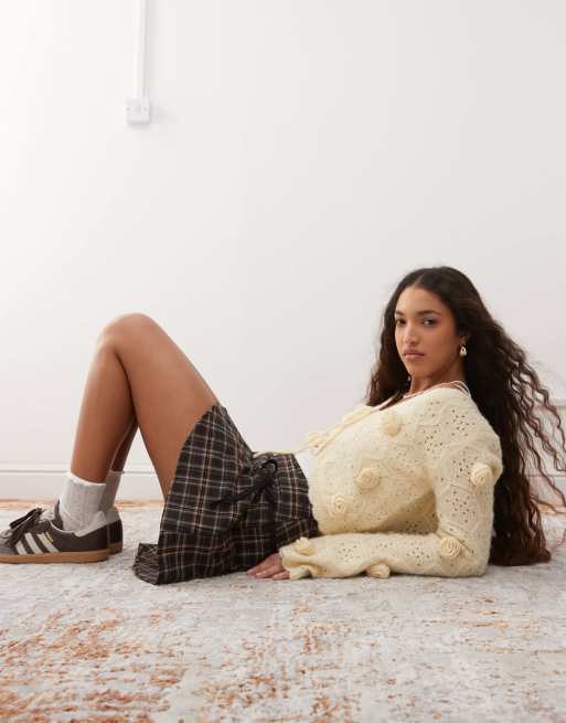Miss Selfridge 3d floral cropped cardigan in buttermilk