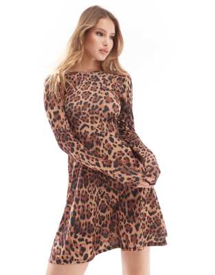Miss Selfridge backless fit and flare mini dress in animal print