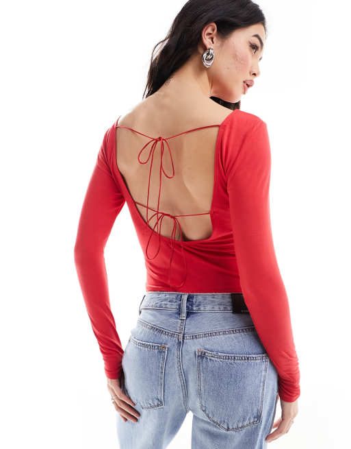 Miss Selfridge backless top with ties in red