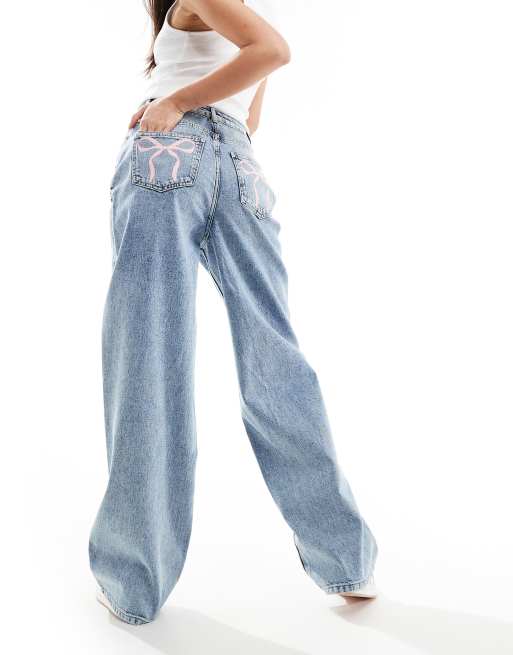 Miss Selfridge bow pocket baggy jean in acid wash