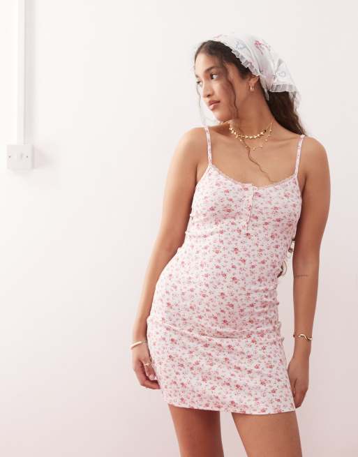 Miss Selfridge button detail mini dress in pink ditsy floral