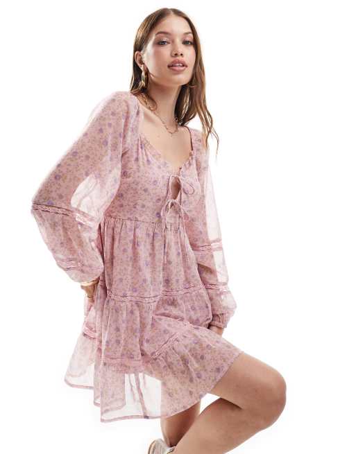 Miss Selfridge chiffon mini dress in pink floral