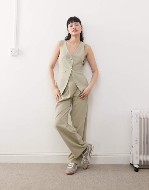 Miss Selfridge co-ord tailored wide leg trouser in khaki