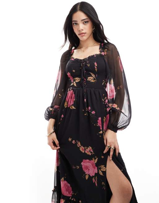 Miss Selfridge corset detail maxi dress in rose print