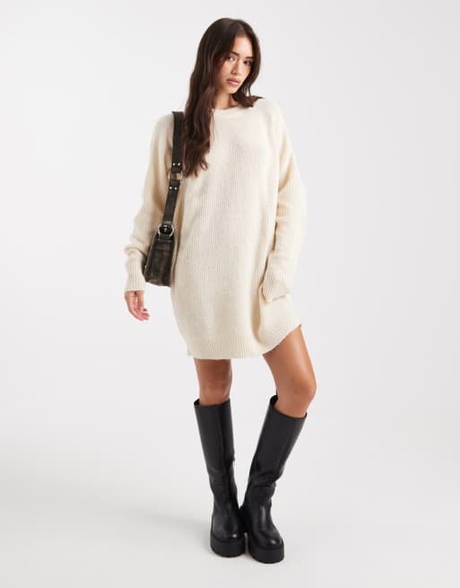 Miss Selfridge crew neck knitted mini dress in cream