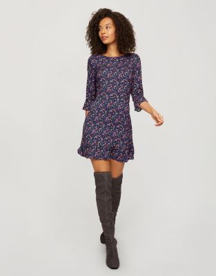 Miss Selfridge ditsy print frill hem smock dress in purple