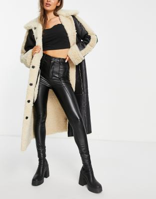 Miss Selfridge faux leather button fly legging in black