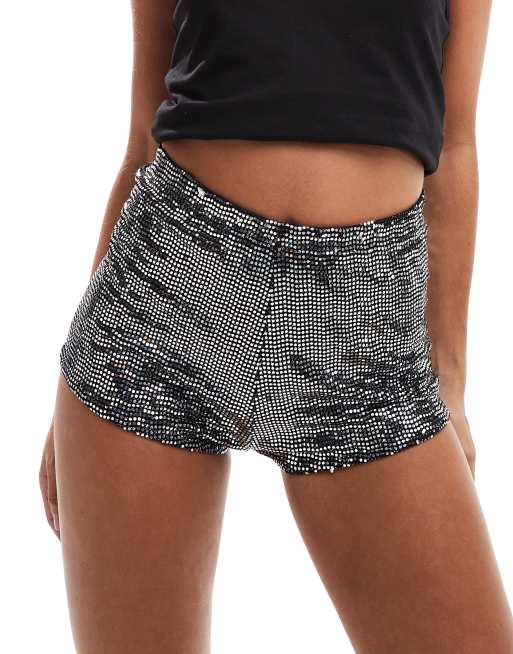 Miss Selfridge festival metallic hotpant short in silver