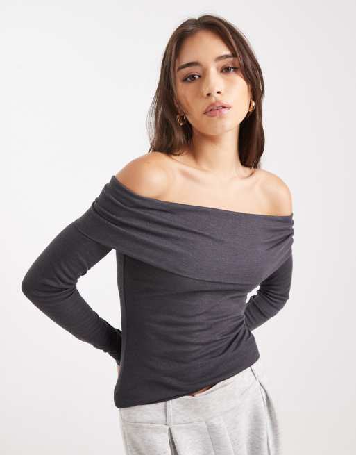 Miss Selfridge fine knit bardot top in charcoal