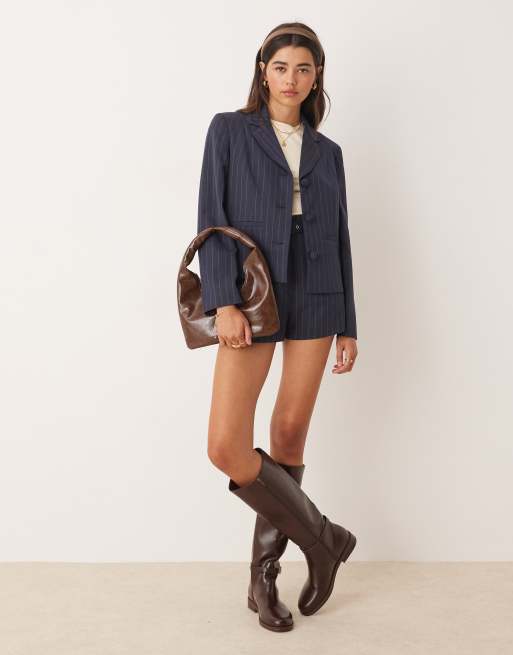 Miss Selfridge fitted pinstripe blazer co-ord in navy