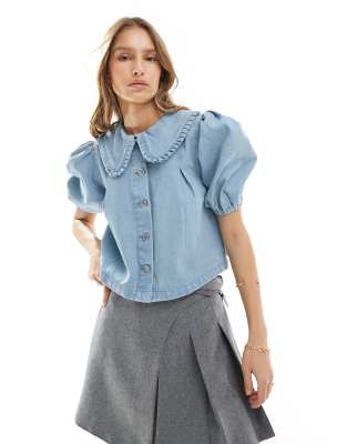 Miss Selfridge frill collar blouse in light blue wash